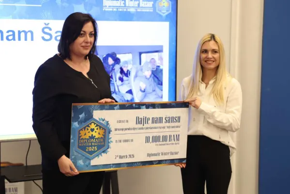 Na Diplomatskom zimskom bazaru koji je održan u decembru u Skenderiji prikupljeno je 310.000 KM, a danas su predstavnici sponzora, ambasada i međunarodnih organizacija svečano uručili čekove dobitnicima grantova – 28 organizacija koje širom Bosne i Hercegovine pružaju podršku djeci i mladima.