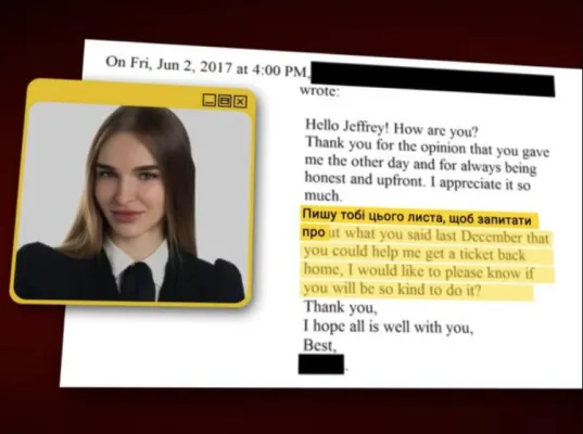 U nedavno objavljenim dokumentima američkog Ministarstva pravde o slučaju Jeffrey Epstein, ukrajinski nezavisni istraživački medij Slidstvo.Info pronašao je prepisku ukrajinske manekenke s preminulim osuđenim seksualnim prijestupnikom.